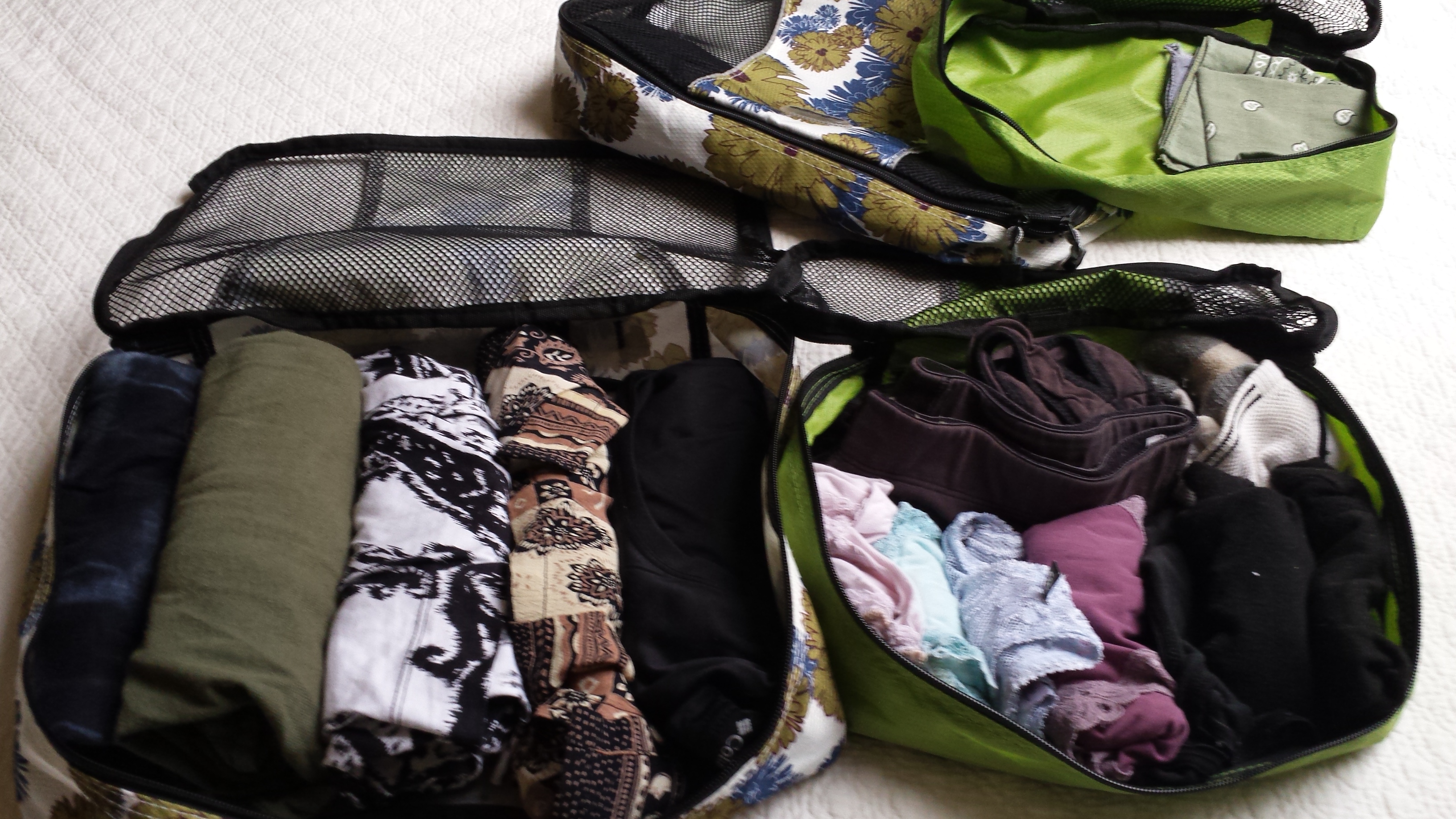 While we technically have room for suitcases or backpacks, getting in and out of them is a drag, and after a couple of days, there’s a lot of rummaging involved within those containers. I pack instead in small zipper packs (sometimes called packing cubes), and then stack them in the closet – one for underwear and socks, one for shirts, one for pants. Roll items up to make them easy to pick out. A separate one serves as a “dop kit” for toiletries. (Limiting yourself to a small amount of space for your stuff is a very good way to limit rummaging anyway….)