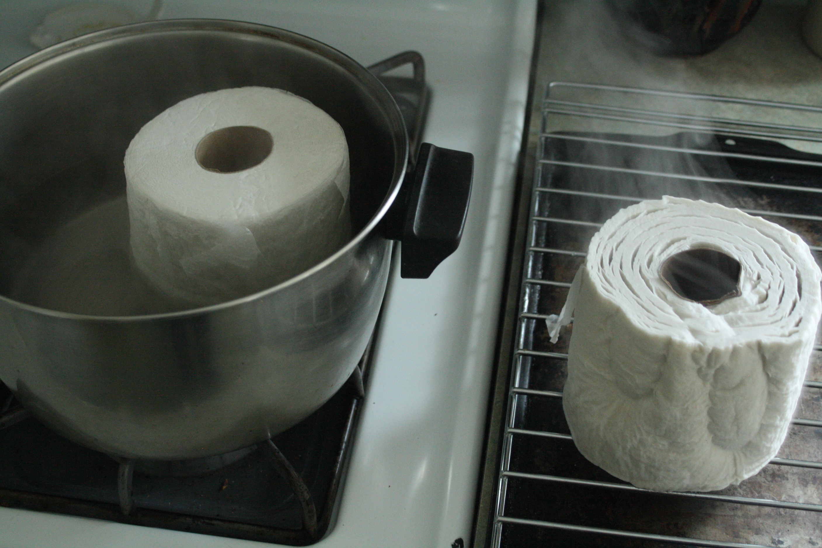 UPDATE 2/24: After six weeks in the dark @ 65-70 degrees F., the roll of TP is all but unrecognizable – enrobed in mycelium.