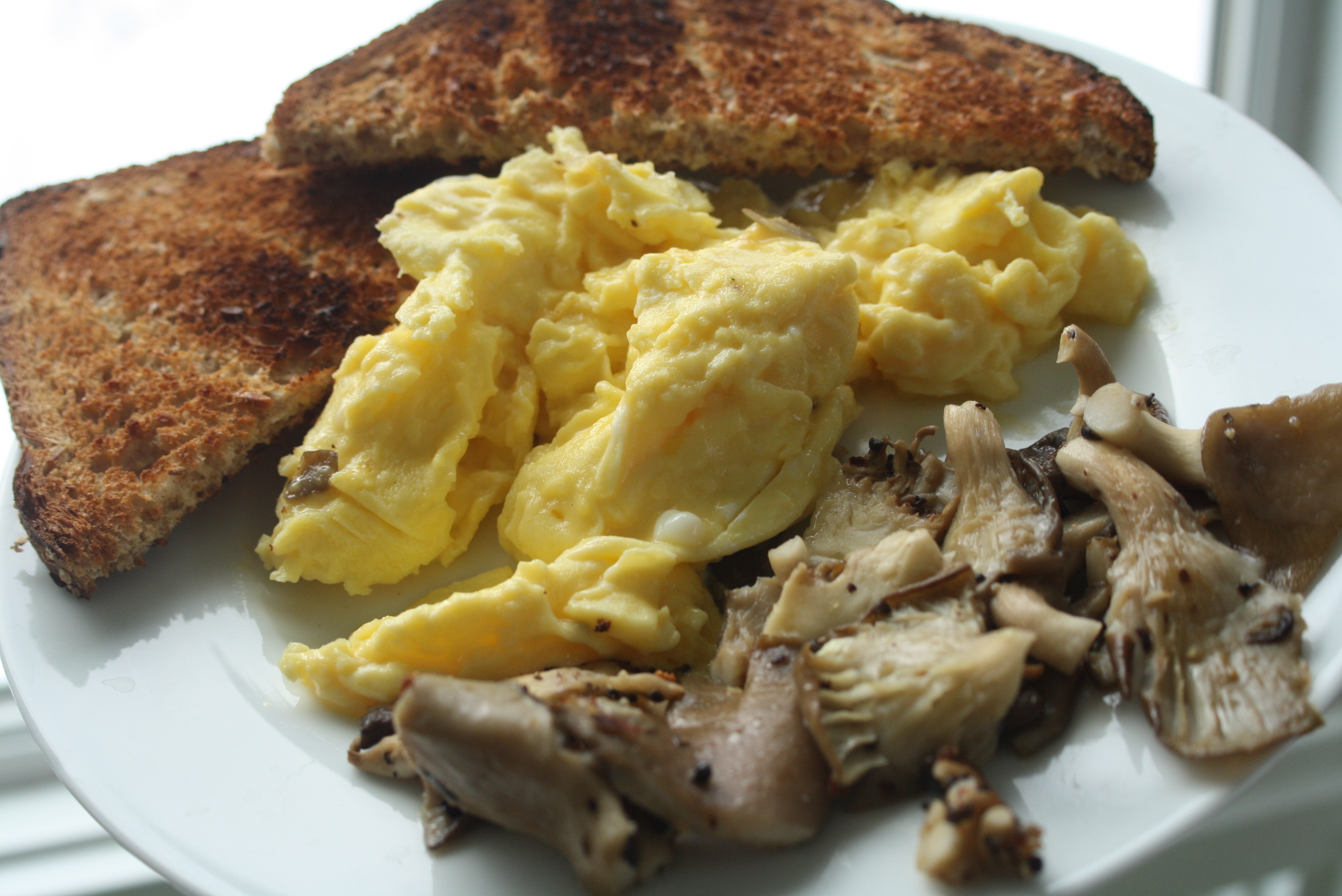 I used a quick-read cooking thermometer to find a space in the warmest room in the house between 65-75 degrees F, where they must be kept in the dark. (I put the bagged TP in a cardboard box.) After 3 weeks, we should see the mycelium, fluffy and white, growing on the TP. Another 1-3 weeks in the dark and the rolls will be ready to for us to “stimulate fruiting.” Mushroom omelets during Town Meeting week, in other words…